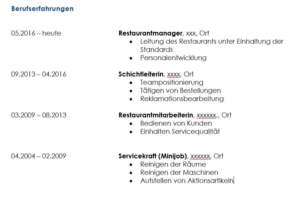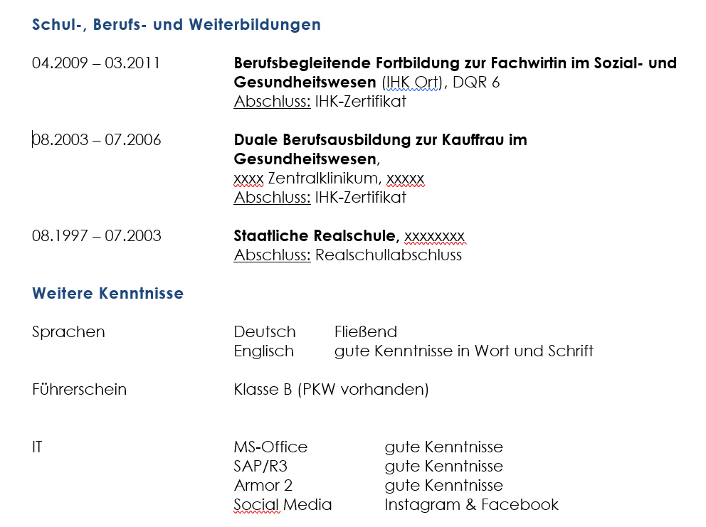 Jetzt kommt das besondere, was leider viele Menschen falsch machen – je nach beruflicher Biographie, kommen verschiedene Lebensläufe zum Einsatz, die allerdings fünf obige Merkmale aufweisen.