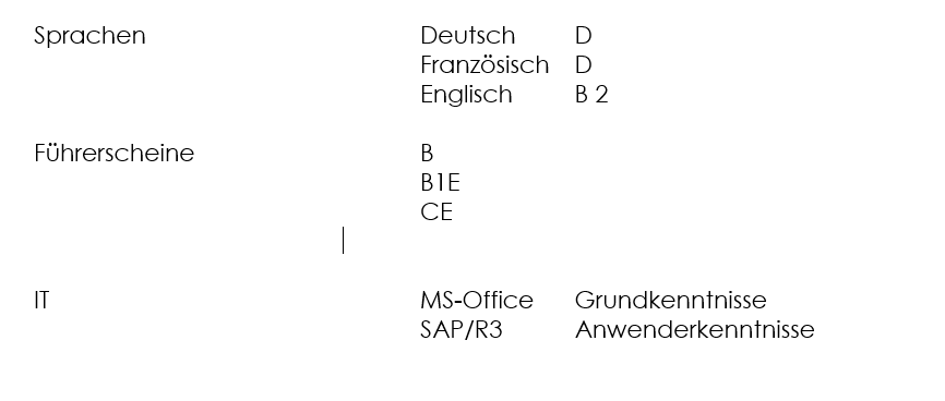 Werden Sprachkenntnisse angegeben so ist das gebräuchliche Sprachniveau des Europäischen Referenzrahmens also z.B. A2, B1, usw. zu nutzen. Bei Warenwirtschaftssystemen und IT-Tools, die genau eTyp Bezeichnung und eine vorgenommene Form der Skalierung, also Anwender, Fortgeschritten, Experte.