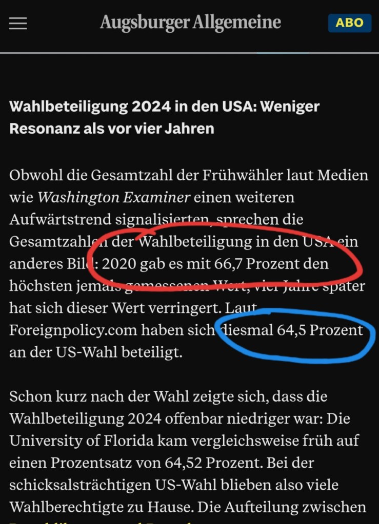 Viele Demokraten gingen wohl nicht zur Wahl… Thema Verfehlung der Partei.. (Quele: Augsburger Allgemeine)