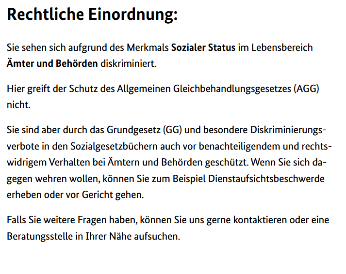 Hier wird die Klaviatur des AGG abgearbeitet, Die Welt gerettet und alle sind glücklich… Wirklich alle? Was ist mit denen welche sich auf Grund Ihrer sozialen Herkunft Diskriminierung erleben?