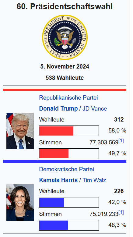 ..Ausgang der 2024er Wahlen. Trump holte 77 Mio. Stimmen (Quelle: Wikipedia)