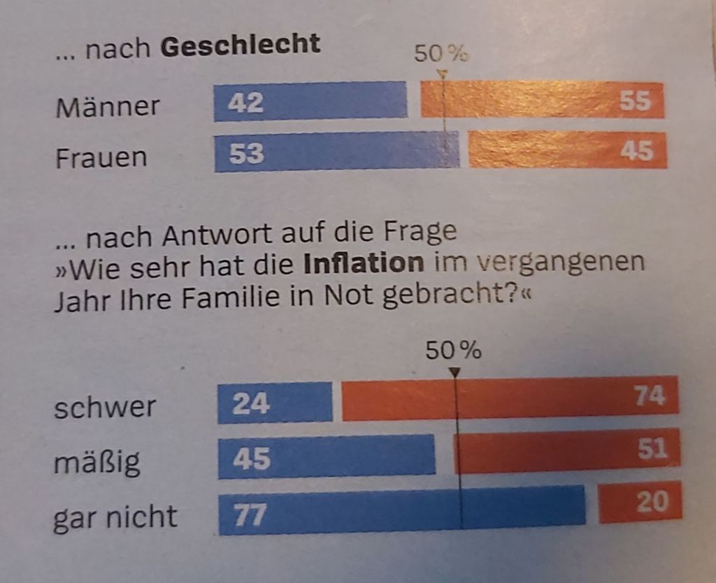 Eindeutige Antwort: Je stärker die Menschen von der Inflation getroffen waren desto stärker votierten sie für Trump..